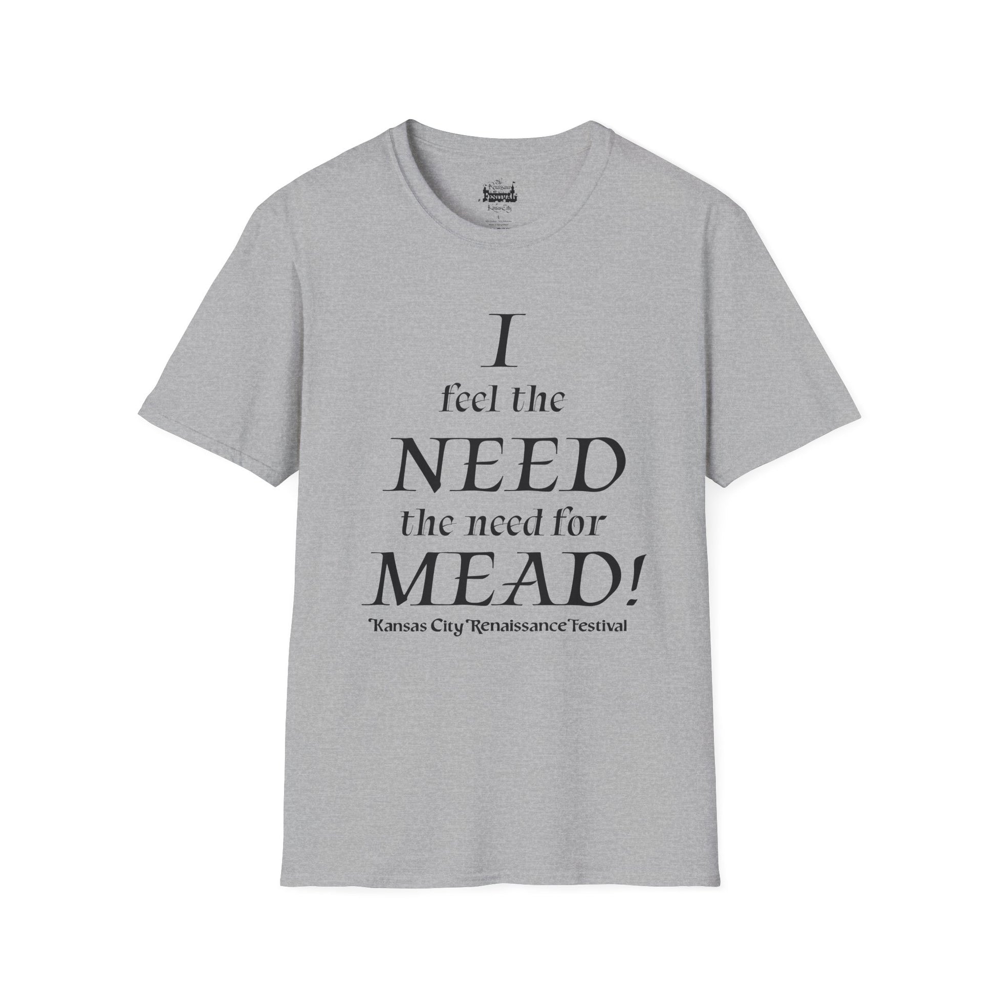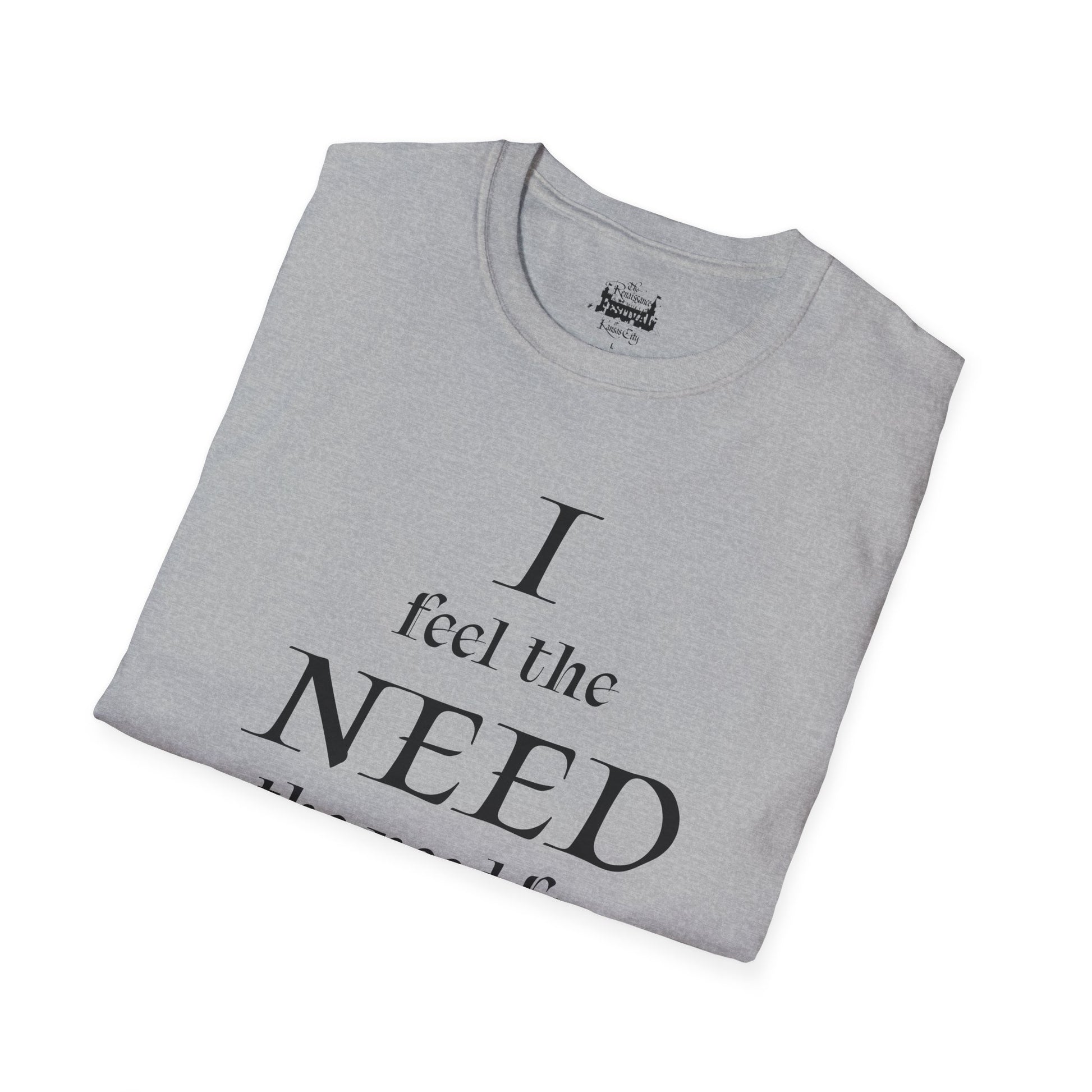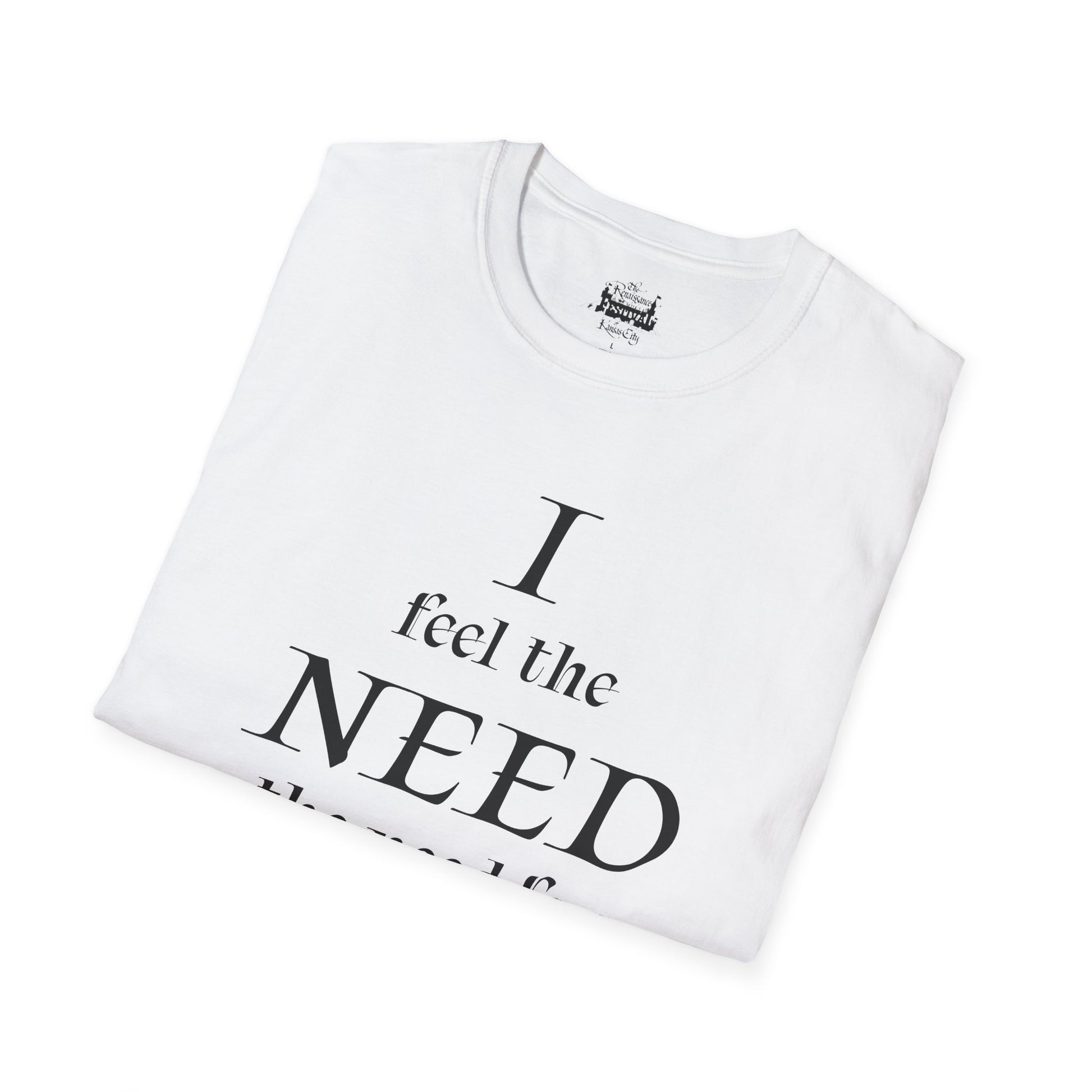 Step into the Renaissance fair with swagger in this playful white cotton t-shirt! Featuring bold, medieval-inspired lettering that declares "I feel the need, the need for mead!" this cheeky design is perfect for knights, jesters, and lords who want to bring some humor to the Renaissance festival scene.